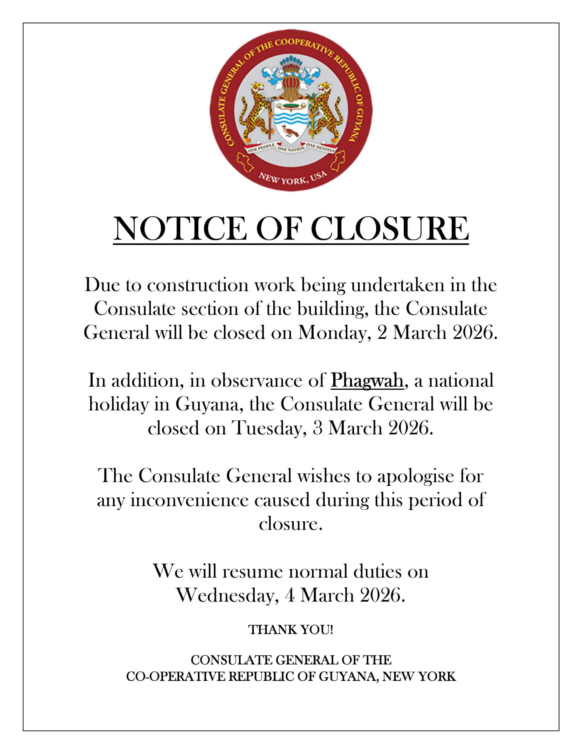 The Consulate General of the Cooperative Republic of Guyana, New York is proud to welcome you to its new website. We have provided a user friendly interface to facilitate and enrich your experience along with guidelines for accessing our services. At the same time, we are committed to providing updates on developments of interest taking place both in Guyana and in the Diaspora. Of particular relevance are sections dedicated to providing an historical background and developments on the Guyana/Venezuela controversy, information on our outreach programs and inviting groups and individuals to register with us.